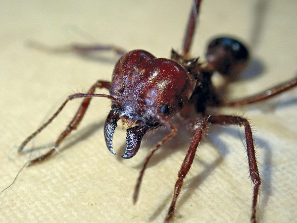 The leafcutter ants seen throughout most of the year are exclusively female. However, early in the rainy season each year (usually in early July), you may see swarms of both male and female winged leafcutter ants (alates) taking part in an annual, multi-day midair mating ritual loosely referred to as “Flying Ant Day.” The female queen candidates carry a small chunk of fungus in their mouths as a sort of “colony starter kit.” The females mate with as many partners as they can, saving enough sperm to last a lifetime underground. When they find a suitable spot, they chew off their wings, dig a small underground nest, and begin cultivating their fungus. The male participants die off a few days after mating, having had the pleasure of helping to expand their colony.